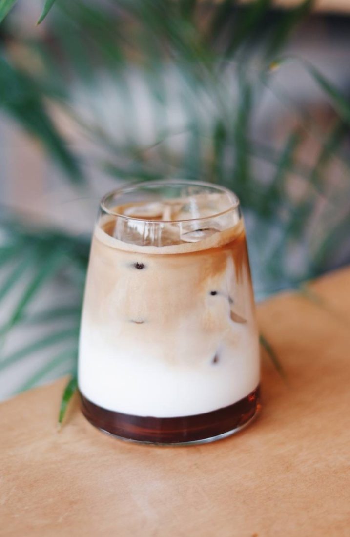 شیر اسپرسو یخ + فوم سبک + سیروپ کارامل